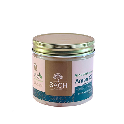 ماسک مو فری سولفات حاوی روغن آرگان برند ساچ ایتالیا Sach Argan Oiil Hair Mask حاوی روغن آرگان وآلوئه ورا مناسب آبرسانی وترمیم کننده مو و فری سولفات میباشدو با دارا بودن مرطوب کنندهای طبیعی ملایم و غنی ساختمان مو ها را ترمیم نموده و سبب افزایش رطوبت و سلامت مو ها می گردد. ماسک مو ساچ حاوی روغن آرگان بدون ایجاد چربی در مو بوده که مو ها را تغذیه و آبرسانی می نماید. ماسک مو آرگان ساچ از آسیب مو جلوگیری میکند و باعث تقویت تارهای مو میگردد .