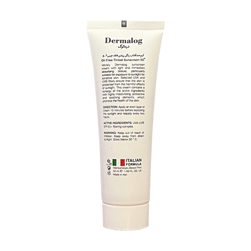 کرم ضد آفتاب فاقد چربی SPF50 درمالوگ 50 میلی لیتر Dermalog Sunscreen SPF50 Oil Free Cream 50ml، حاوی ترکیباتی ویژه و قوی مانند؛ اکسید روی و ویتامینهای ای E و ب۵ B5 است که یک سد محافظتی قوی بر روی پوست ایجاد میکند تا در برابر پرتوهای فرابنفش UVA و UVB خورشید مقاومت کند که در پیشگیری از آسیبهای ناشی از نور آفتاب موثر خواهد بود.