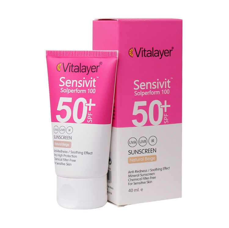 حساسیت پوست ممکن است به دلایل مختلفی ایجاد شود، کرم ضد آفتاب SPF۵۰ پوست حساس ویتالیر در کنار استفاده از یک روتین پوستی مناسب پوست حساس به شما کمک میکند تا ضمن محافظت کامل پوست خود در برابر اشعههای uva، uvb، iR، منجر به کاهش التهاب و قرمزی پوست شما شود. همچنین ضد آفتاب سنسی ویت ویتالیر (sensivit) برای افراد مبتلا به بیماری روزاسه نیز مورد استفاده قرار میگیرد و به خوبی التهاب و قرمزی را درمان میکند. این ضدآفتاب حاوی spf ۵۰ است و در دو رنگ بژ طبیعی (شبیه ترین رنگ به پوست) و بی رنگ در بازار موجود است.