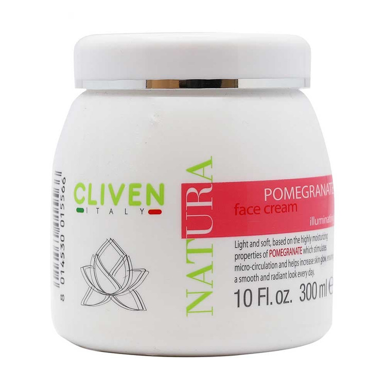 کرم صورت آبرسان و شفاف کننده انار کلیون Cliven محصولی بسیار سبک و مخملی بوده که غنی از عصاره انار و تمام خواص این میوه میباشد.کرم آبرسان و شفاف کننده انار کلیون برای اشخاصی توصیه می گردد که میخواهند پوستی روشن و براق داشته باشند. ترکیبات موجود در آن پوست را عمیقا مرطوب کرده و عمل گردش خون را در شبکه مویرگی زیر پوست تسریع می نماید. در نتیجه موجب شفاف تر شدن پوست شما می شوند.مقادیر بالایی آنتی اکسیدان ها، فلاونوئید ها و ویتامین C در انار موجود می باشد. کرم صورت آبرسان انار کلیون به افزایش تولید کلاژن و الاستین در پوست کمک می کند.