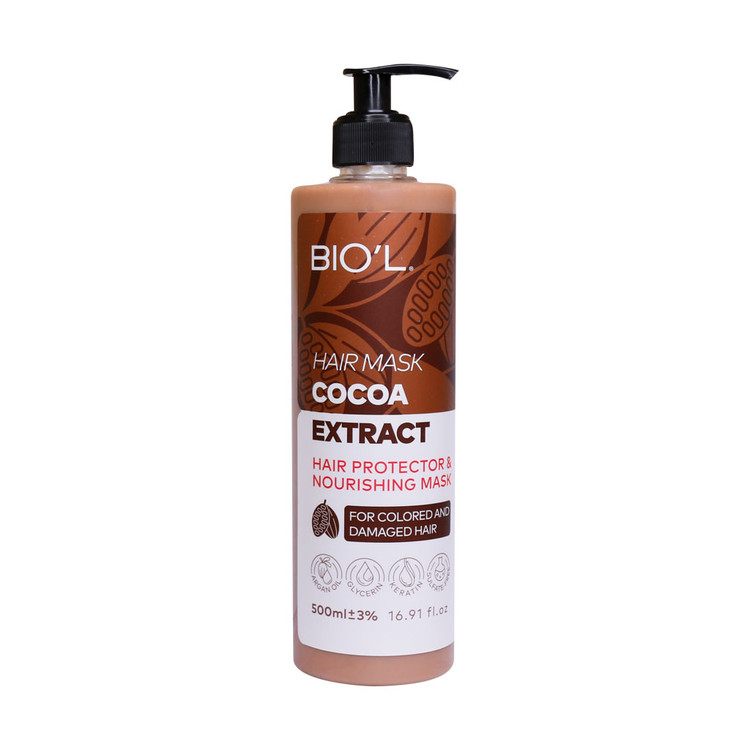 ماسک مو پمپی کاکائو موهای رنگ شده وآسیب دیده بیول 500 میل BIOL
